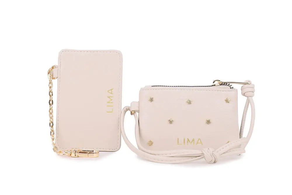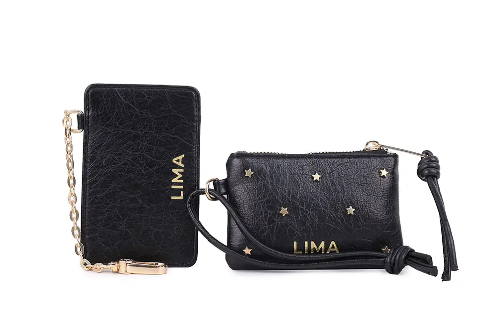 Descripción: Billetera chica Diana: el monedero que tu look necesita. Con un diseño único, cuenta con un tarjetero independiente que podés enganchar a esta billetera o a cualquier otro modelo que quieras llenar de brillo, color y frescura. Confeccionada en ecocuero simil 'Rischiatto', con un acabado brillante y textura inconfundible, y pequeñas tachas en forma de estrellas que le dan el toque final. ¡Un accesorio perfecto para brillar en cualquier ocasión. MEDIDAS: 12 x 0,5 x 8 cm MATERIAL: CUERPO: 100% PU // FORRERIA: 20% ALGODÓN 80% POLYESTER