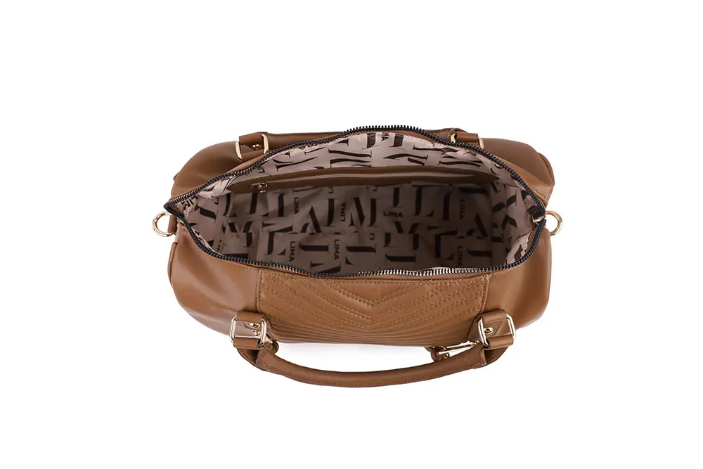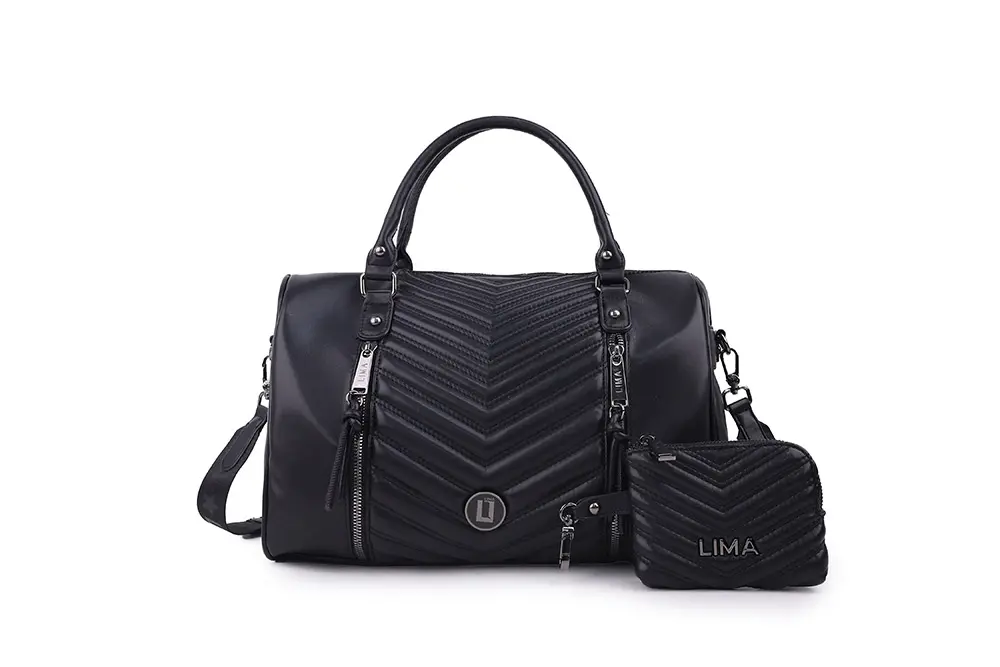 Descripción: Su diseño tipo baúl con cierre y dos bolsillos exteriores te permitirá llevar todo lo que necesitas de forma cómoda y práctica. Su PU de textura suave y liviano y un diseño de matealaseado en forma geométrico le da un toque de glamour a este producto que no pasará desapercibido. Podes usarlo con el strap con logo para darle un toque más casual a tu outfit y estarás lista para cualquier ocasión, ya sea para una salida casual con amigas o para una noche especial. Además usa su llavero para tener las llaves a mano o darle un buen look a cualquier producto. Tambien trae una mini bag con cierre para llevar de manera segura cualquier objeto pequeño que necesites contigo. MEDIDAS: 34 x 14 x 23 cm MATERIAL: CUERPO: 100% PU FORRERIA: 100% POLYESTER