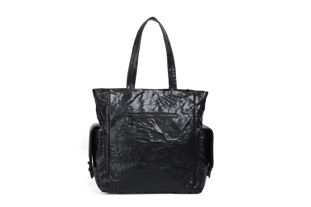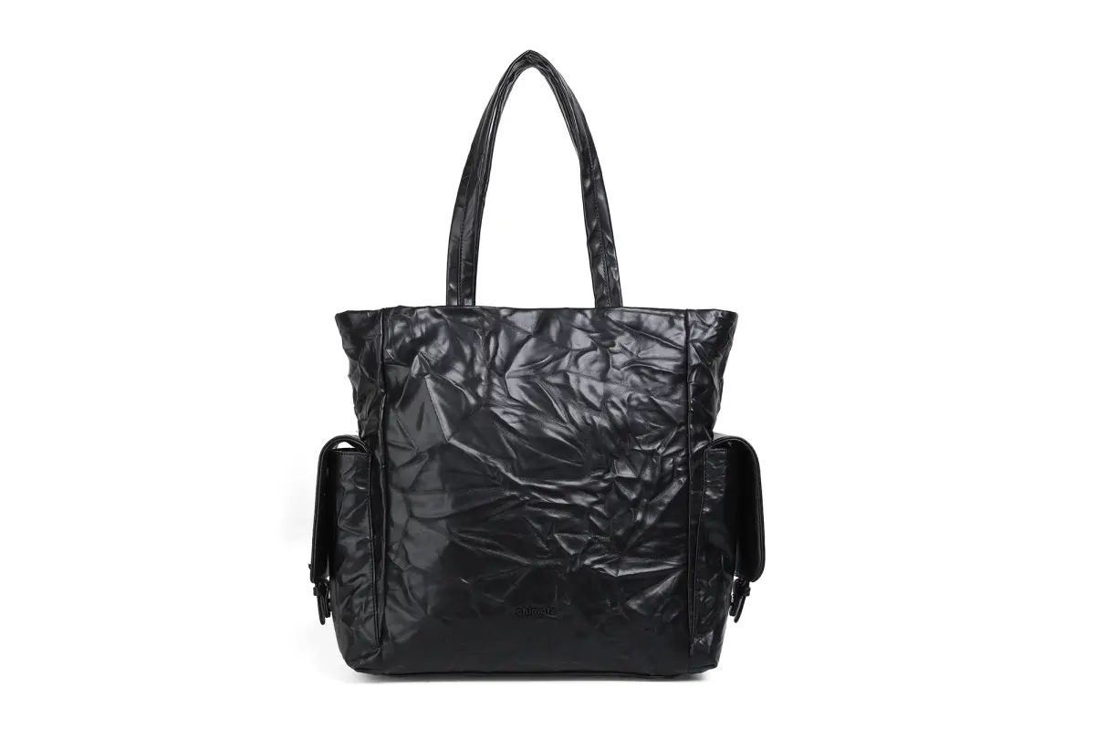 Descripción: ¡Atentos total black fans! Diseñados en un PU negro arrugado muy cool, los productos Barcelona van a convertirse en tus accesorios favoritos de la temporada. Esta tote tiene él tamaño ideal para que lleves todas tus cosas. Además, cuenta con bolsillos laterales de solapa y un cierre en la parte trasera para que guardes el celu o ¡Lo que más te guste! En su interior vas a encontrar una cinta con mosquetón para que tengas las llaves siempre a mano. Además, su detalle de etiquetas y cintas colgantes le dá el toque final que esperabas. Material:PU. Medidas: Ancho en cm: 38. Alto en cm: 40. Pofundidad en cm: 14.5.