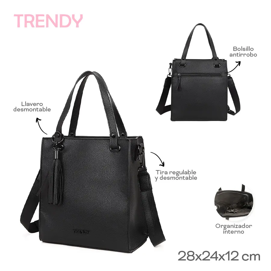 Descripción: Llavero desmontable, tira regulable y desmontable, bolsillo antirrobo, organizador interno. Composición: PU. Medidas: Alto: 28cm x Ancho: 24cm x Profundidad: 12cm.