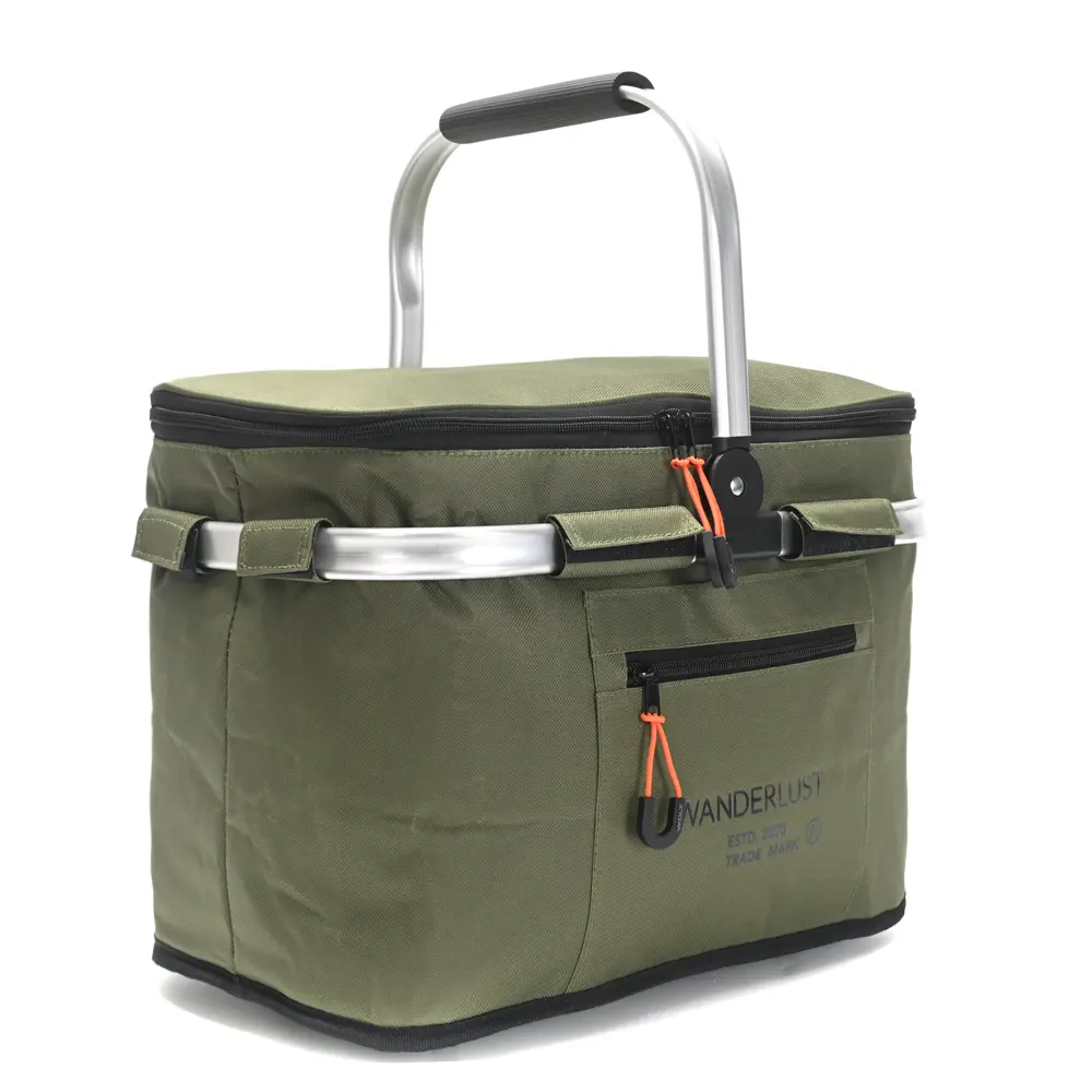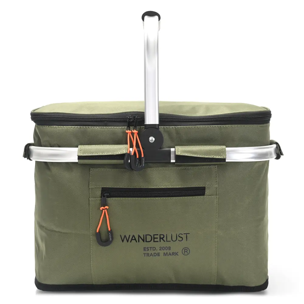 Canasto WANDERLUST 43x26.5x28 cm con doble asa y estructura de aluminio forreria isotermica