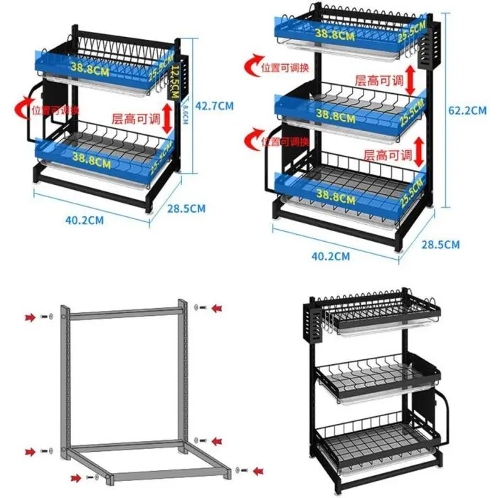 Escurridor Metálico Tipo Rack de 3 Pisos
