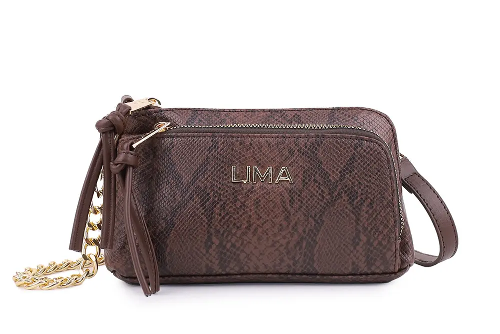 Descripción: Dale el toque Glam a tu outfit con la Minibag Leonor. Confeccionada en PU animal print, tipo "Snake", perfecta para cualquier momento. Es muy liviana y es ideal para llevar el celular. En el frente un bolsillo con cierre para ítems pequeños. El interior está forrado y tiene un pequeño bolsillo. Trae una correa larga regulable, que puede desmontarse y utilizarse como sobre. MEDIDAS: 18 x 3.5 x 12 cm MATERIAL: CUERPO: 100% PU // FORRERIA:100% POLYESTER