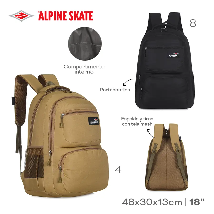 MOCHILA TACTICA ALPINE SKATE. · Compartimiento Principal con Cierre doble abertura. · Dos Divisiones. · Bolsillo frontal Superior. · Sistema Molle. Amplio compartimiento Principal con Espalda Acolchada para mayor Comodidad - Modelo Ultra Liviano y fácil de transportar - Tiras Acolchadas Air Mesh, para el cuidado de tus hombros - Espalda Acolchada ¡Ideal para tus viajes o paseos! Lleva tus cosas protegidas ¡La mochila más Segura! · Altamente reforzada anti desgarre. · Tiras acolchadas Regulables Air Mesh. · Logo Frontal Alpine Skate. · Bolsillo interno. · Espaldar Acolchado. · Zippers Metálicos con Tiradores deportivos. · Asa Reforzada. · Interior forrado. · Diseño Anatómico y Aerodinámico. · Medidas: 48cm x 30cm x 13cm.