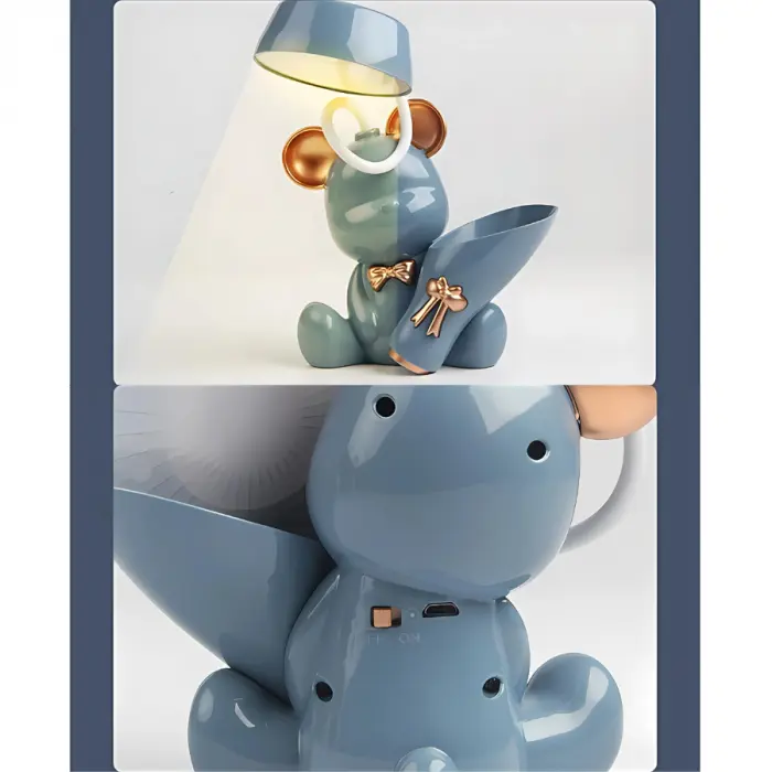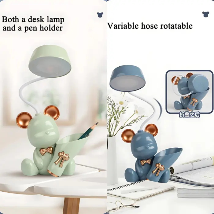 Lampara velador con porta lapiceras y sacapuntas incluido.