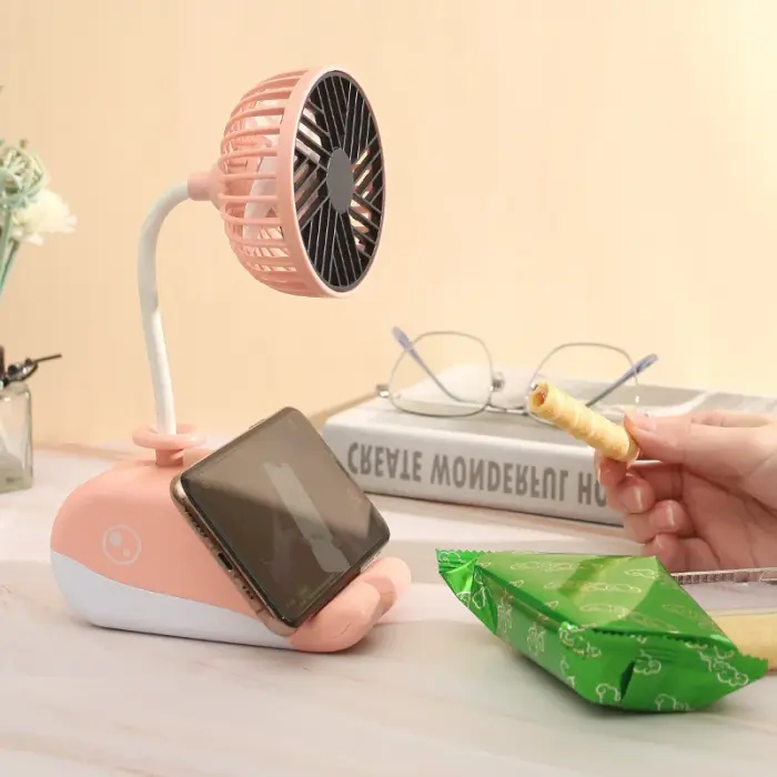 Bonito ventilador: el soporte es adecuado para sostener celulares y otros articulos que mas te convengan, manteniendo tu escritorio ordenado.